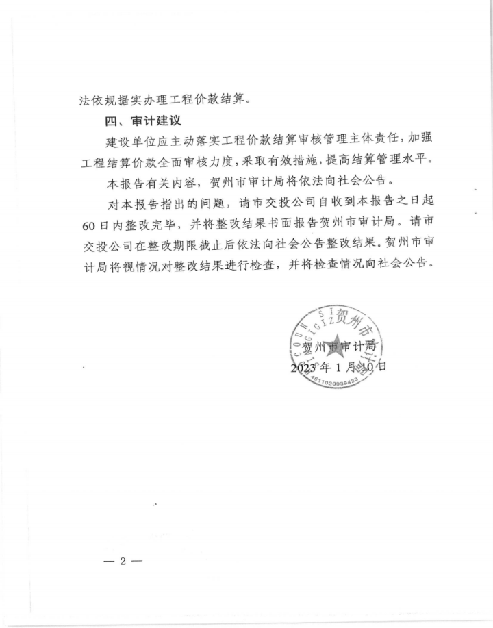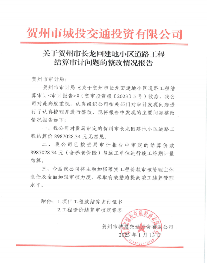 下一篇:城投公司關(guān)于望高至擔桿嶺水廠(chǎng)原水輸水管道項目結算審計發(fā)現問(wèn)題整改情況報告