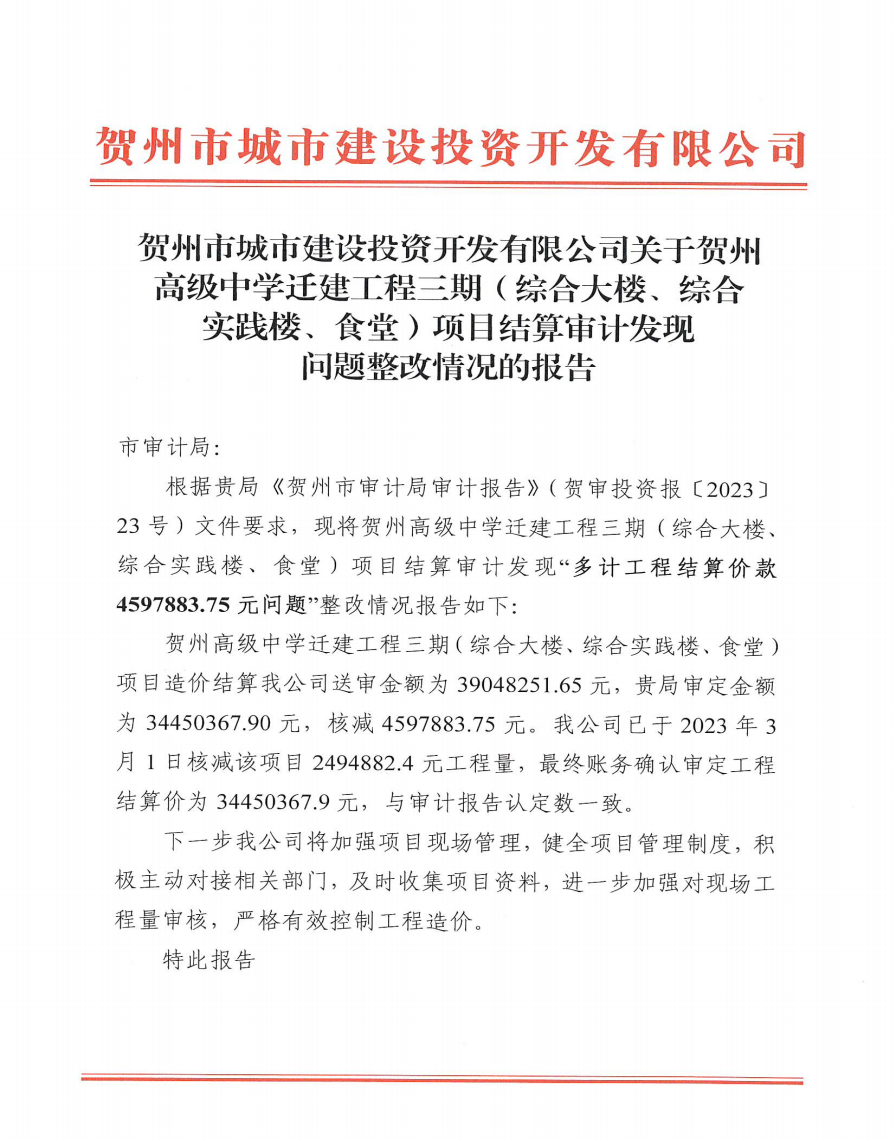 上一篇:賀州城投集團原董事長(cháng)、總經(jīng)理蒙金昌同志經(jīng)濟責任審計發(fā)現問(wèn)題整改情況公告